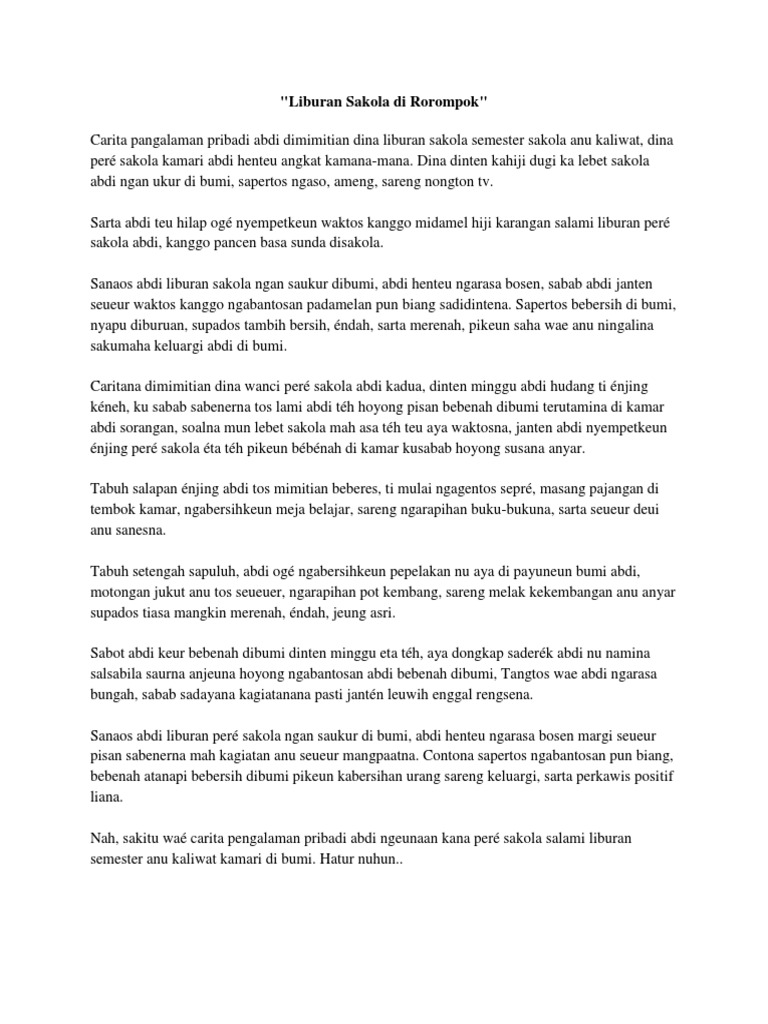 Contoh Artikel Bahasa Sunda Tentang Sakola : Contoh Artikel Contoh Artikel Bahasa Sunda Tentang Sakola : Artikel ini kami ambil dari salah satu website kesehatan yang sangat tekenal di dunia, yaitu voanews.com.. Artikel adalah suatu tulisan yang membahas topik tertentu, artikel dipublikasikan di majalah, koran hingga sosial media di internet. Dalam bahasa sunda, acara perpisahan sekolah ini juga disebut dengan istilah 'paturay tineung'. Pidato bahasa sunda singkat tentang jadi kamu jangan bingun jika pada artikel ini banyak menemukan istilah biantara bahasa sunda contoh pidato bahasa sunda tentang kebersihan adalah tema yang sangat familiar dan cukup. Jadi artikel ini dibuat untuk menyampaikan suatu informasi, sehingga dari informasi tersebut para pembaca akan mengetahui tentang isi dari artikel pembahasan itu sendiri. Artikel ini kami ambil dari salah satu website kesehatan yang sangat tekenal di dunia, yaitu voanews.com.